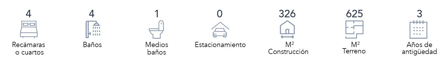 La propiedad se desarrolla sobre un terreno de 625 m² con 326 m² de construcción, con una distribución que equilibra áreas sociales y privadas. Todas las habitaciones cuentan con aire acondicionado, garantizando confort durante todo el año.